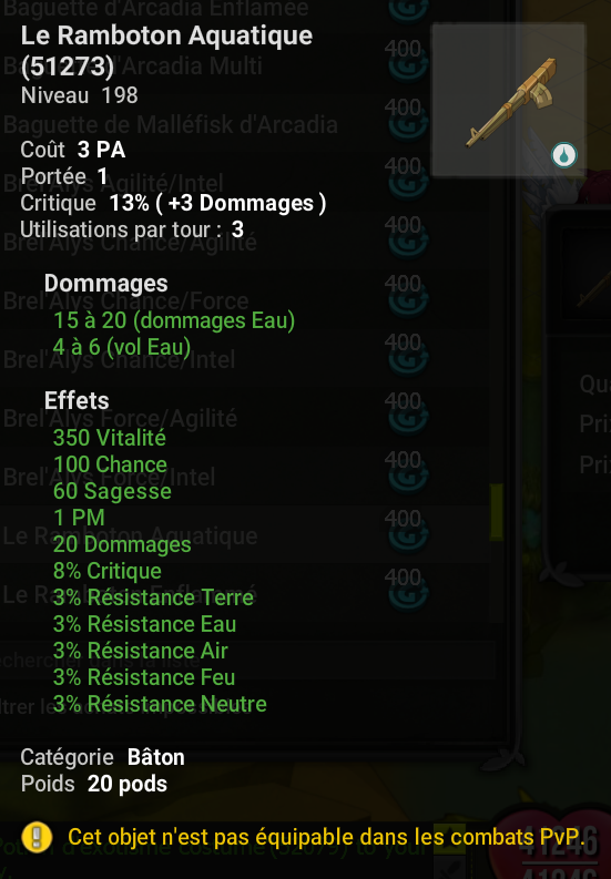 • Les conditions d'équipement PA & PM sur les items à conditions sont réactivées.